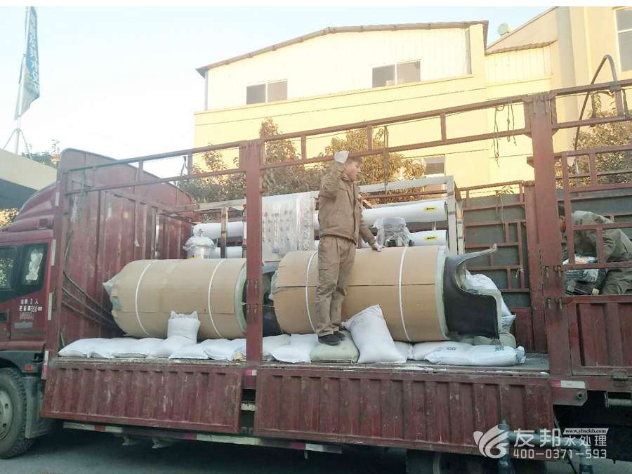 來到鄭州友邦純凈水設備的發貨現場,這是發往陜西的20噸用于精細化工行業的水處理設備。