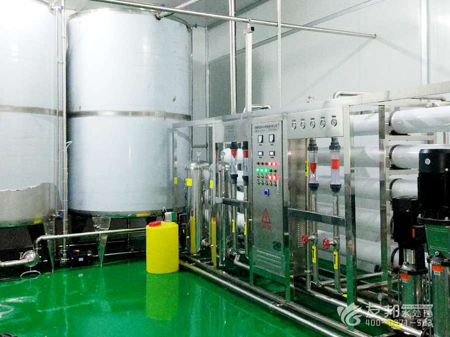 原水→增壓泵(一用一備)→砂過濾器→炭過濾器→硬化器(根據地區不合選用)→精密過濾器→兩頭水箱→RO前水泵→精密過濾器→RO高壓泵→RO反滲透零碎→RO水箱